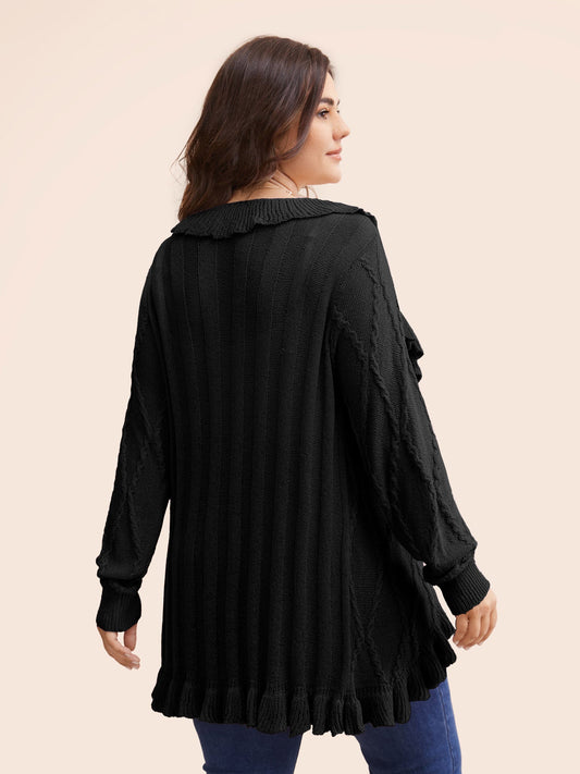 Ruffle Trim Ties Cable Knit Cardigan