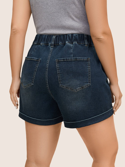 Dark Wash Drawstring Roll Hem Denim Shorts