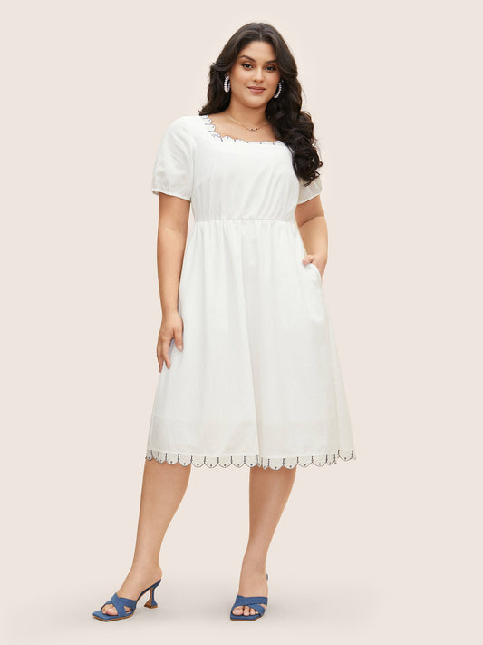 Cotton Lace collar Lantern Sleeve Midi Dress