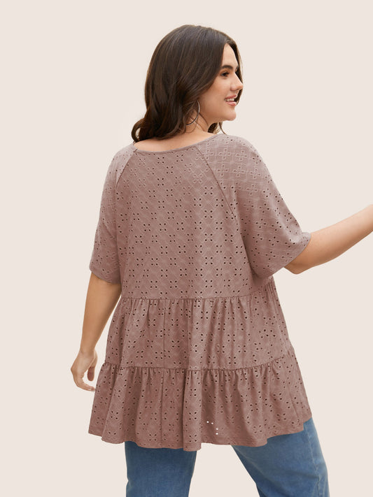 Solid Broderie Anglaise Ruffle Layered Hem T-shirt