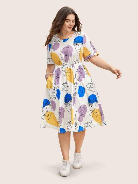 Colorblock Contrast Graffiti Elastic Waist Dress