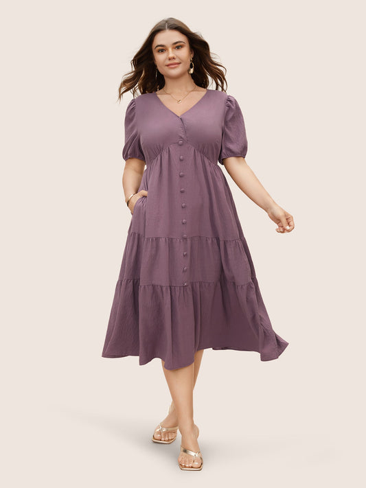 U Neck Geometric Tie Knot Puff Sleeve Dress