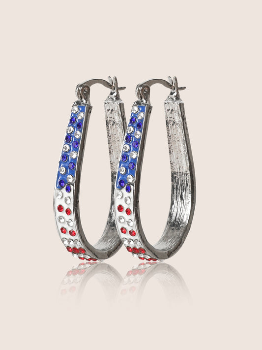USA Flag Color Cubic Zirconia Hoop Earrings