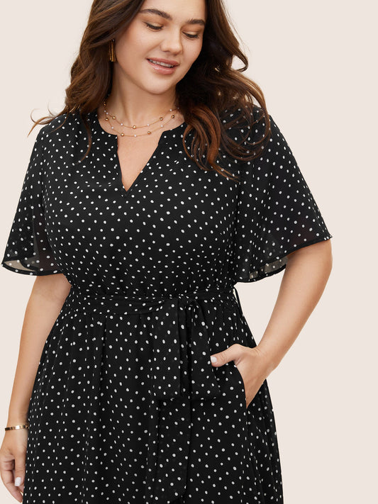 Chiffon Polka Dot Ruffle Sleeve Dress