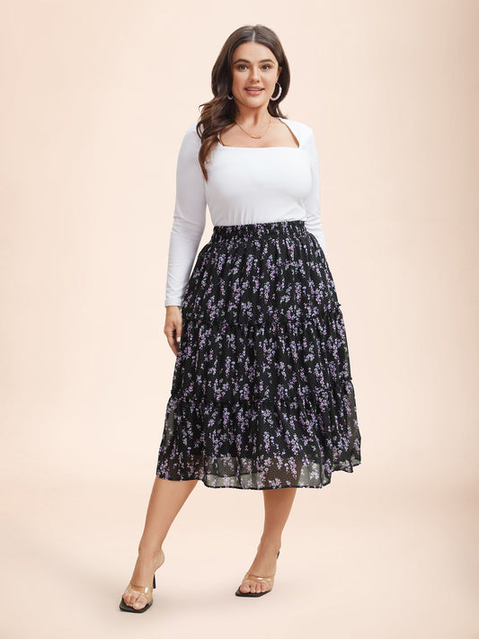 Geometric Hollow Out Notched Ruffle Layered Hem Dress