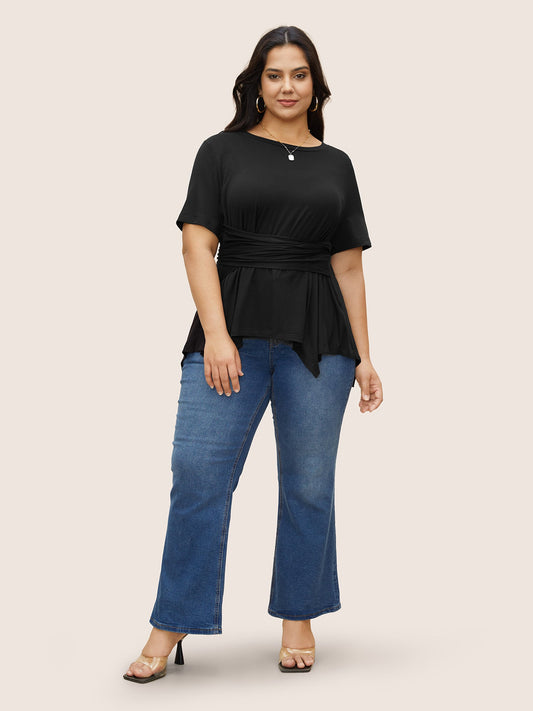 Crew Neck Knotted Ruched T-shirt