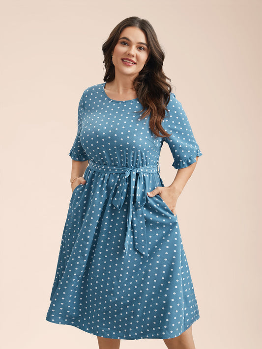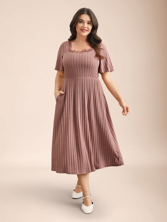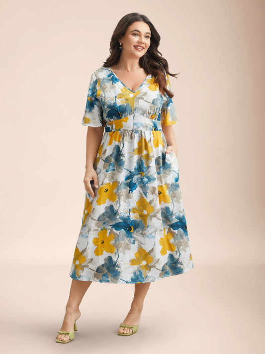 Floral Color Contrast Ribbed Pockets Maxi Dress