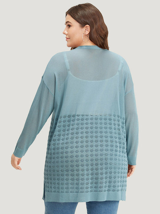 Tunic Plain Hooded Pocket Split Hem Kimono