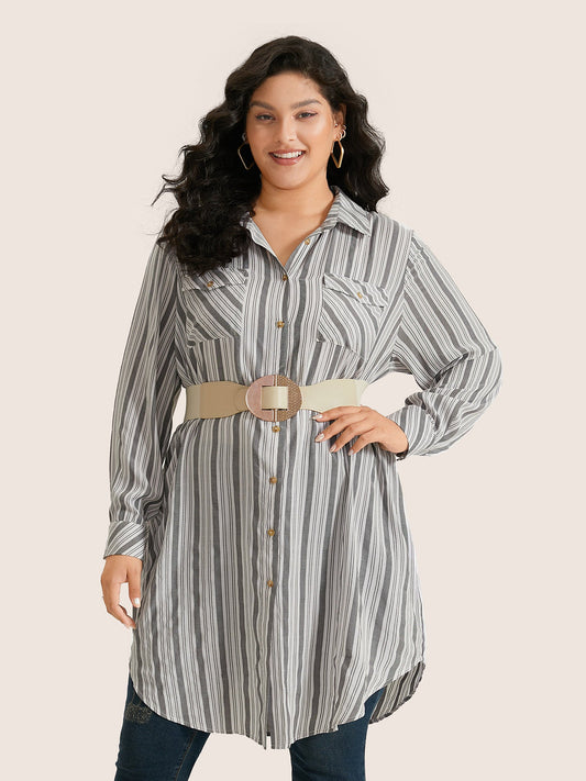 Striped Flap Detail Curved Hem Blouse