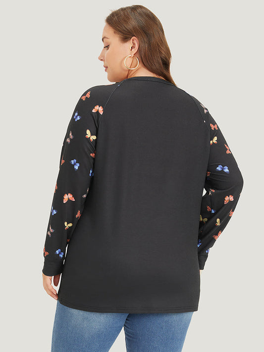 Butterfly Print V Neck Raglan Sleeve Sweatshirt
