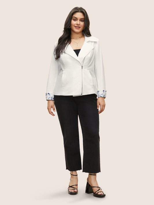 Corduroy Patchwork Floral Lapel Collar Zipper Jacket