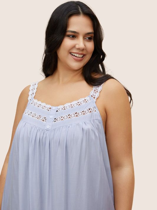 Silhouette Floral Print Lace Panel Bowknot Sleep Dress
