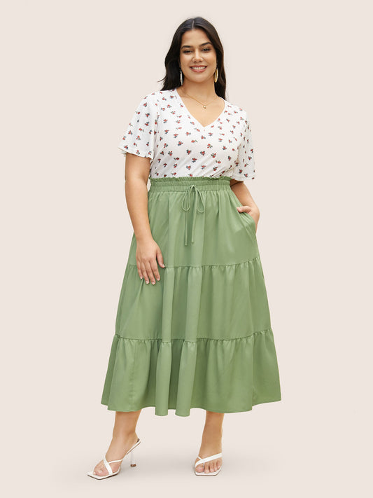Solid Paperbag Waist Ruffle Layered Hem Skirt