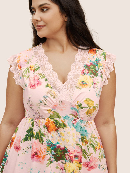 Floral Petal Sleeve Elastic Waist Crisscross Blouse