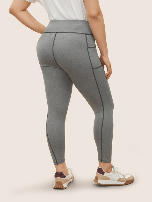 Solid Elastic Waist Patched Pocket Jumpsuit