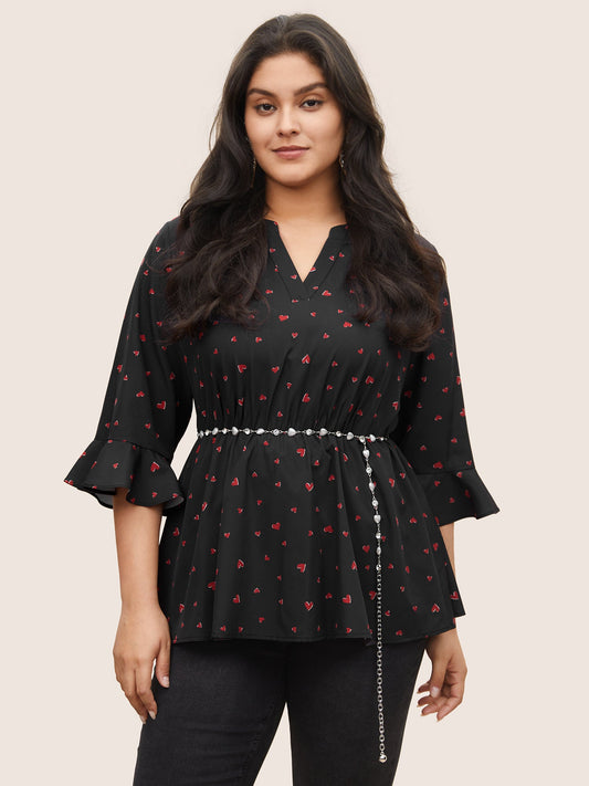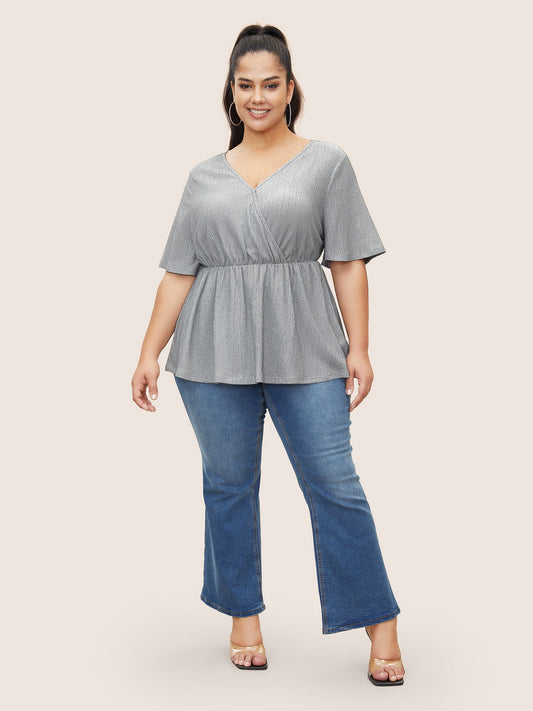 Stretchy Woven Heather Elastic Waist Wrap Blouse