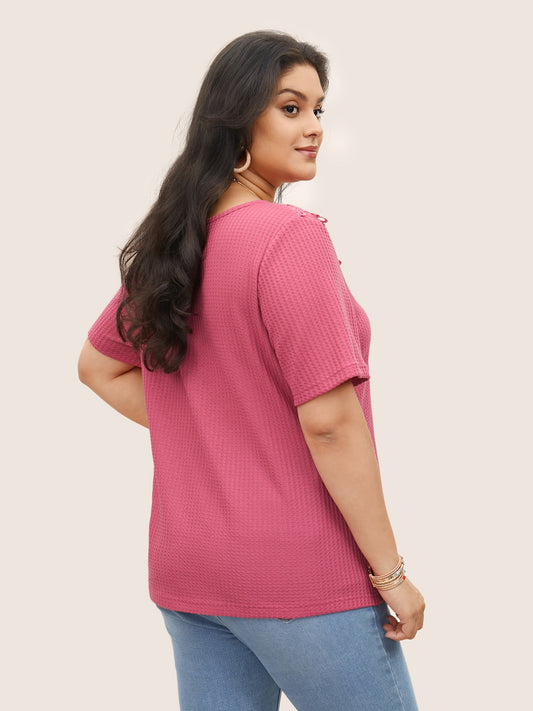 Solid Broderie Anglaise Gathered Dolman Sleeve T-shirt