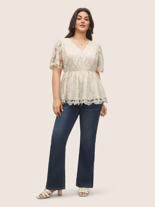 Lace Panel Mesh Patchwork Elastic Waist Blouse