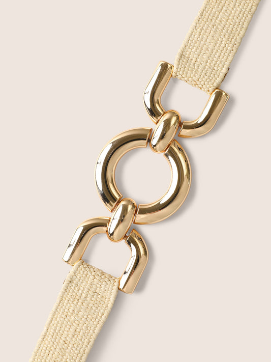 Gold Round Circle Buckle Elastic Waist Woven Belt