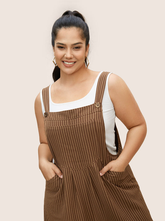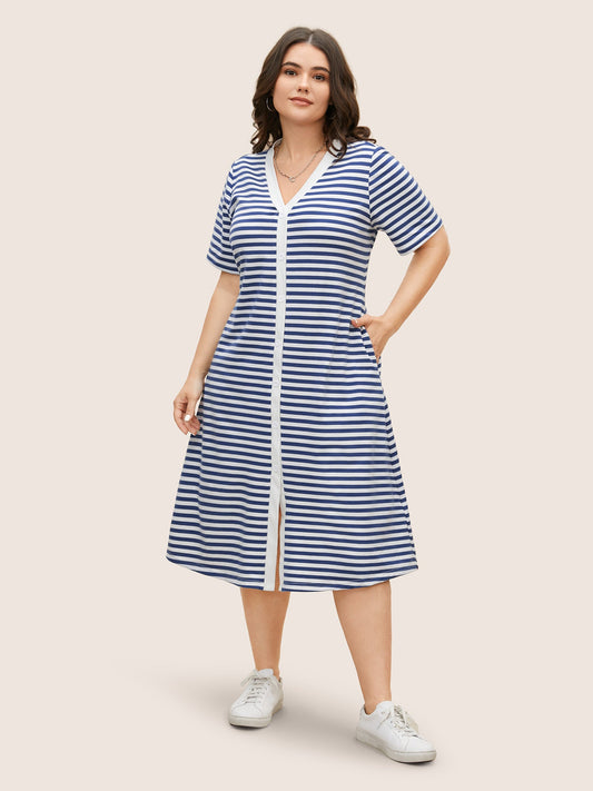 Contrast Striped Button Detail Midi Dress