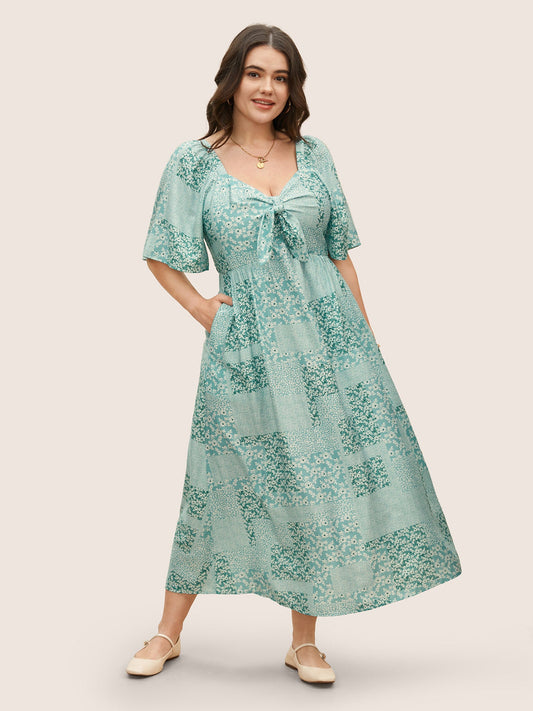 Ditsy Floral Tie Knot Flutter Sleeve Dress