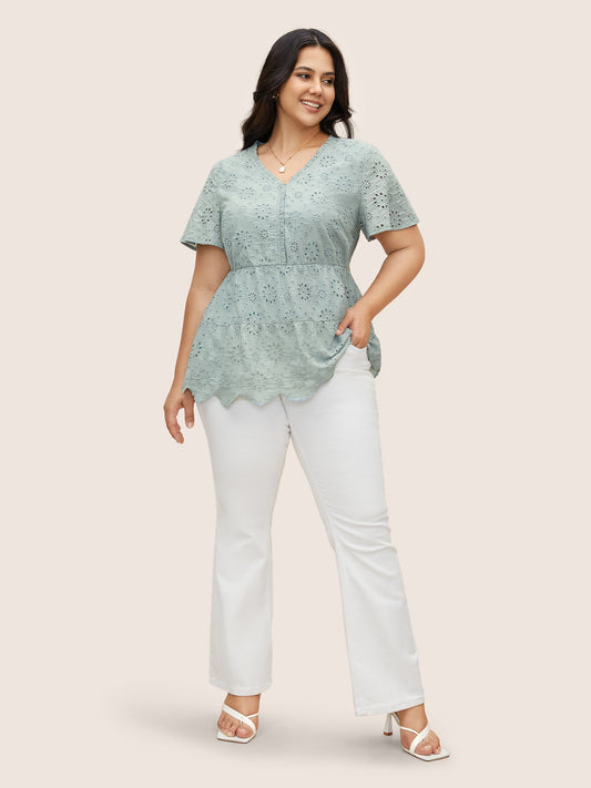 Plain Broderie Anglaise Flutter Sleeve Blouse