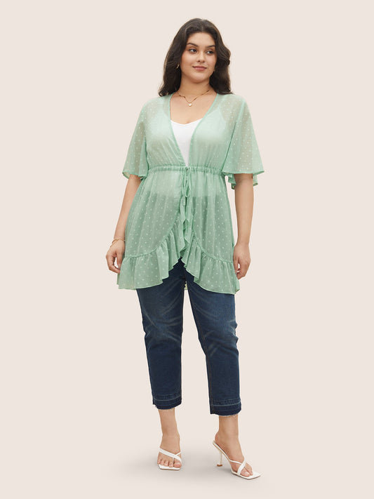 Plisse Drawstring See Through Patchwork Ruffles Kimono