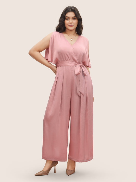Plain Wrap Pleated Sleeveless Jumpsuit