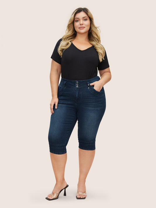 Solid Cap Sleeve Shirred Frill Trim Dress