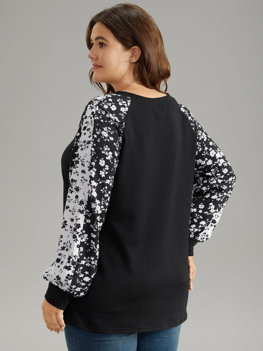 Ditsy Floral Contrast Raglan Sleeve Sweatshirt