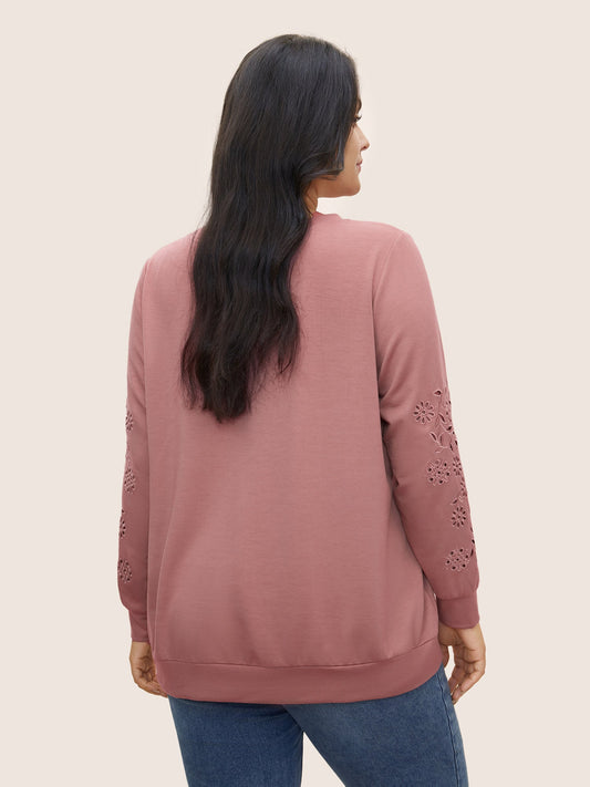 Solid Broderie Anglaise Crew Neck Sweatshirt