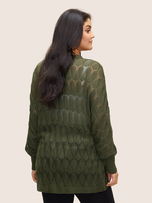 Solid Geometric Hollow Out Batwing Sleeve Cardigan