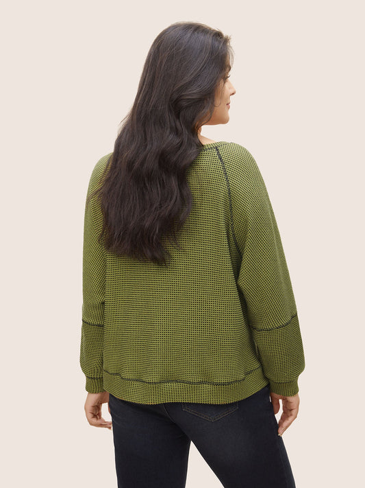 Waffle Knit Notched Contrast Stitch Patchwork Sweatshirt