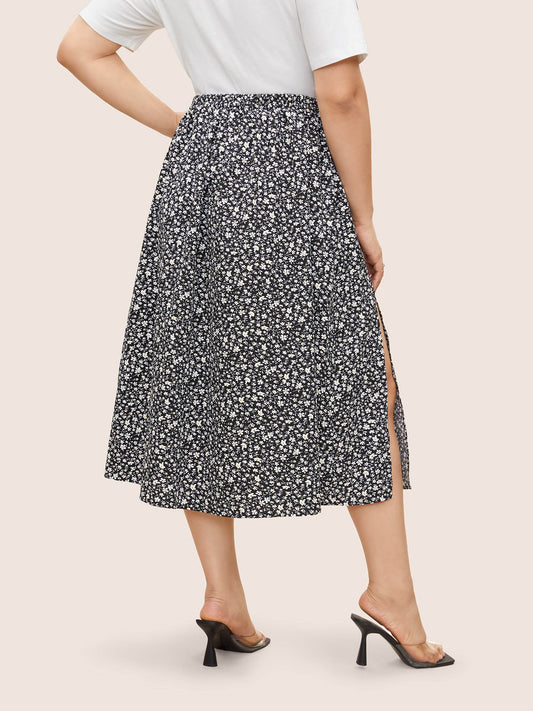 Ditsy Floral Pocket Cropped Split Side Skirt