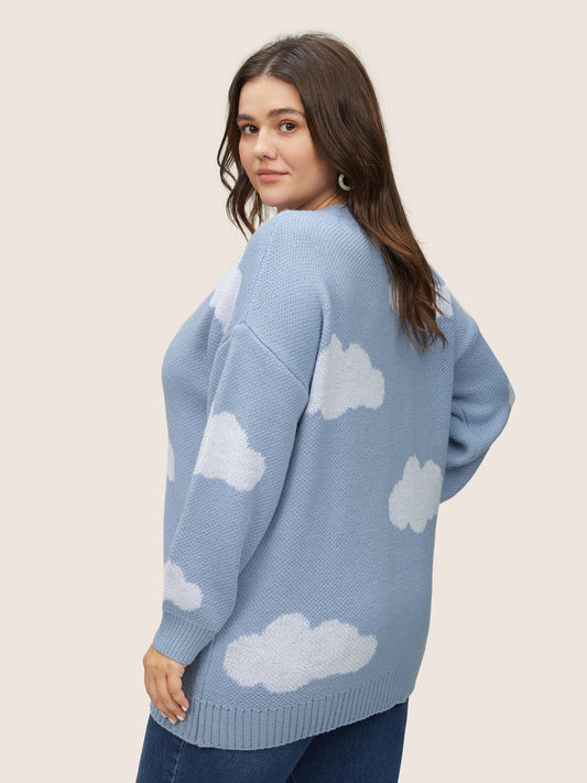 Texture Drawstring Lantern Sleeve Arc Hem Blouse