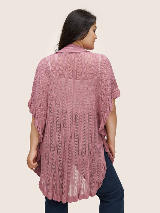 Solid Ruffles Dolman Sleeve Split Hem Cardigan