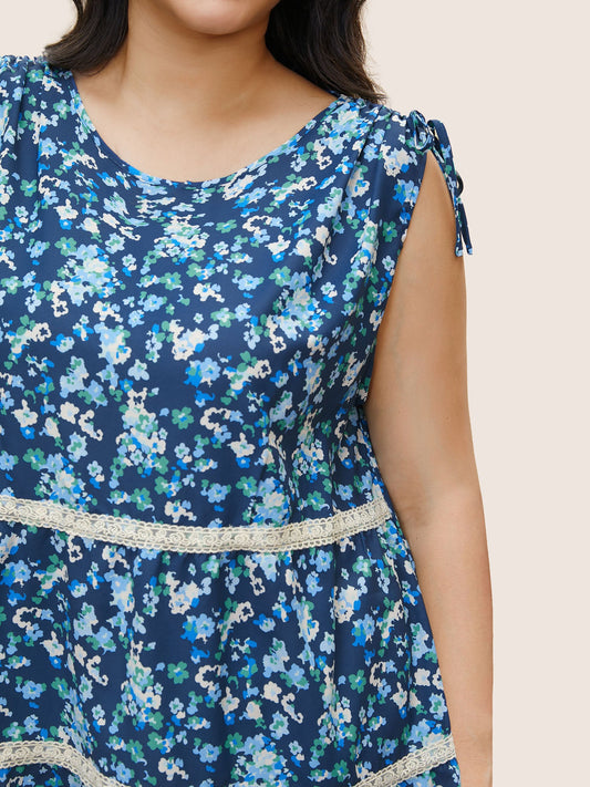 Ditsy Floral Drawstring Lace Patchwork Tank Top