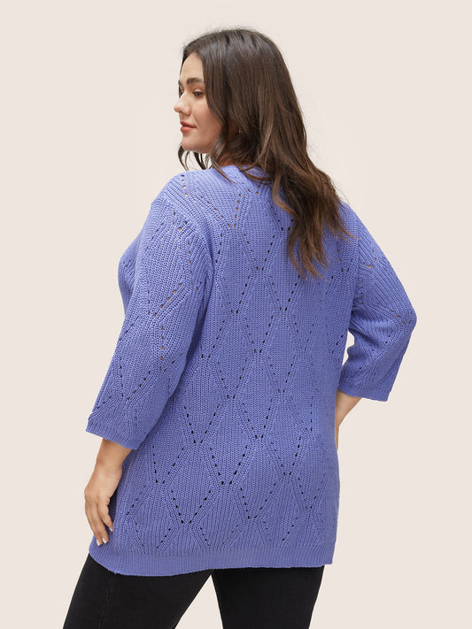 Cotton Blended Geometric Hollow Out Pullover