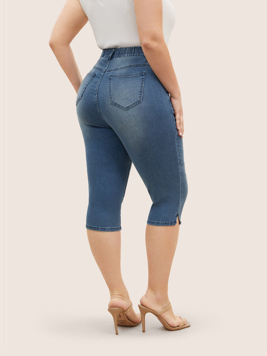 Medium Wash Elastic Waist Pull-on Jegging Jeans