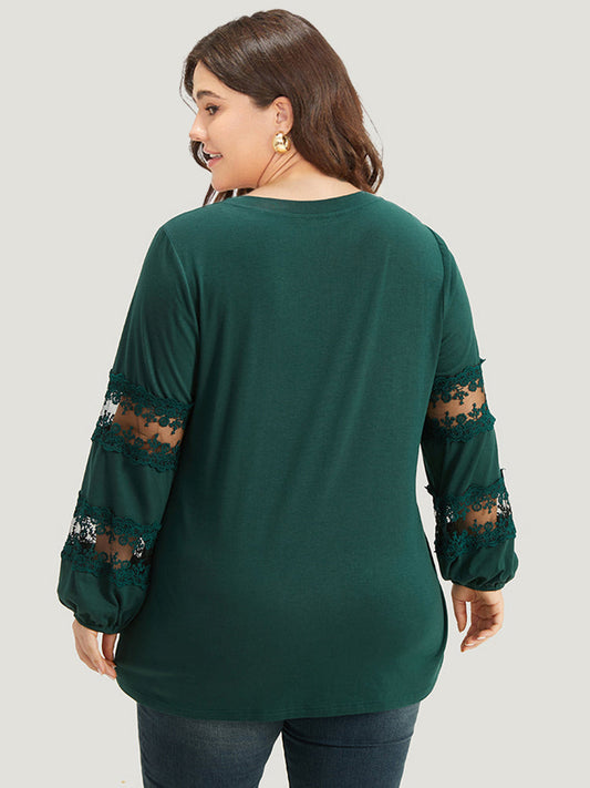 Halloween Crochet Lace Mesh V Neck Lantern Sleeve T-shirt