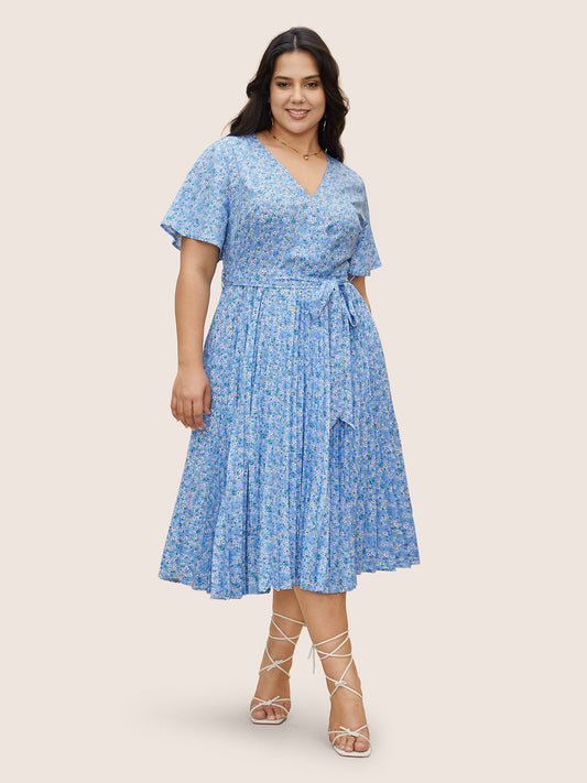 Square Neck Natural Flowers Ruffle Sleeve Dress