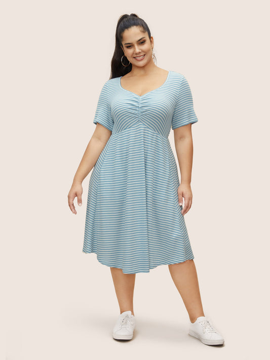Square Neck Gathered Ruffle Sleeve Tassel Dress