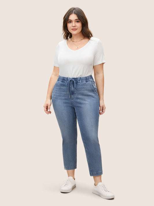 Solid Lantern Sleeve Ruffle Trim T-shirt