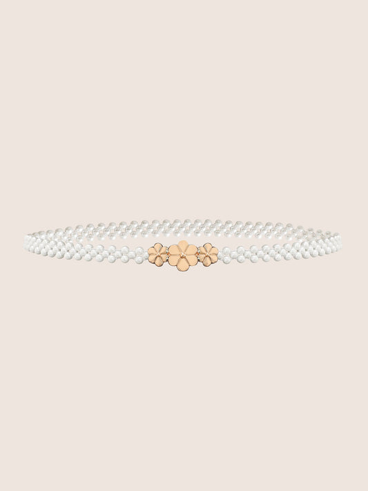 Flower Detail Pearl Beaded Elastic Waist Belt