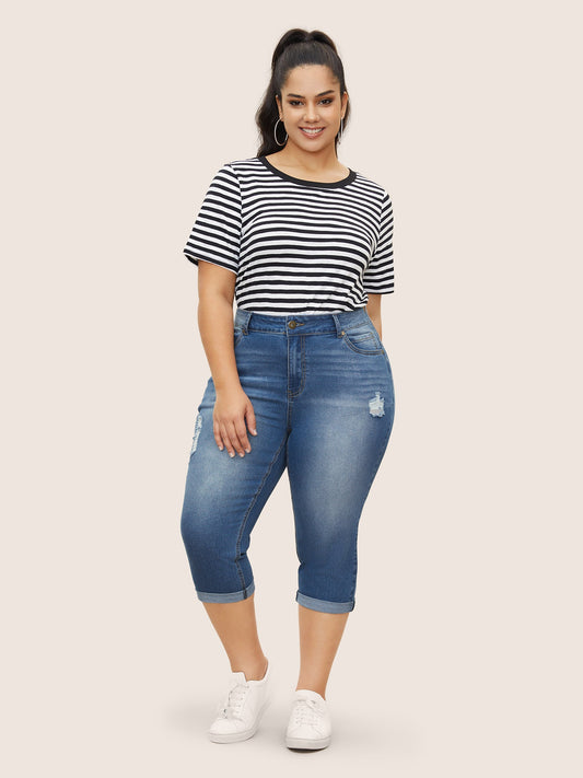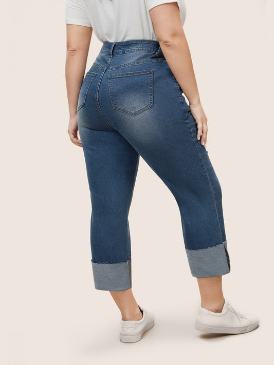 Positive Slogan Print Cuffed Sleeve T-shirt