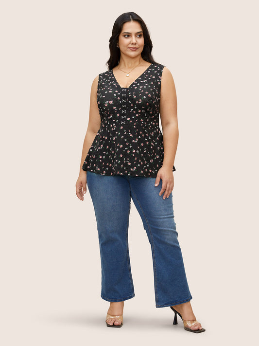 V Neck Ditsy Floral Buckle Detail Tank Top