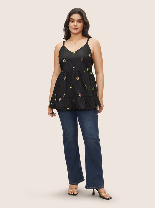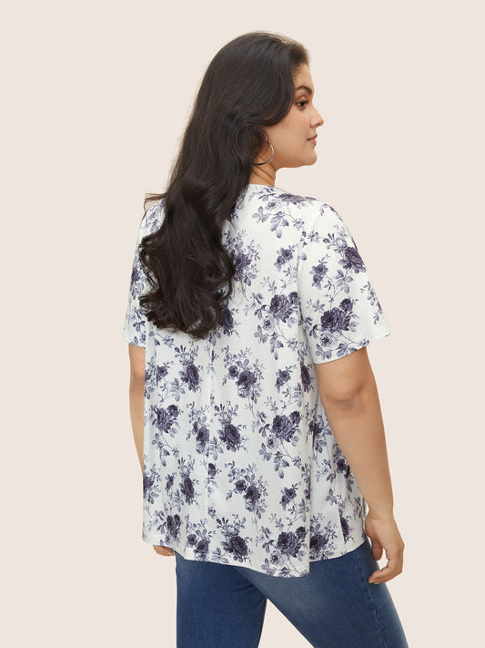 Floral Embroidered Crew Neck Puff Sleeve T-shirt