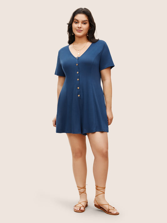 Plain Lace Panel Ruffle Cap Sleeve Dress