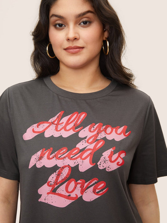 Positive Slogan Print Round Neck T-shirt