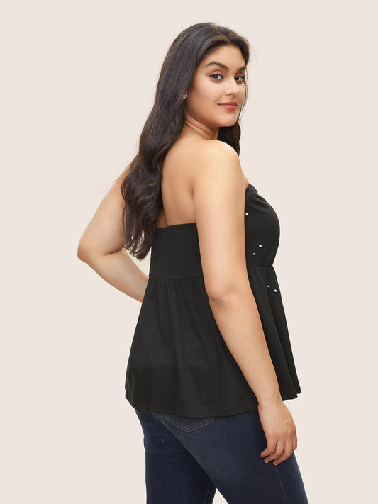 Plain Lace Patchwork Mesh Rhinestone Cami Sleep Top